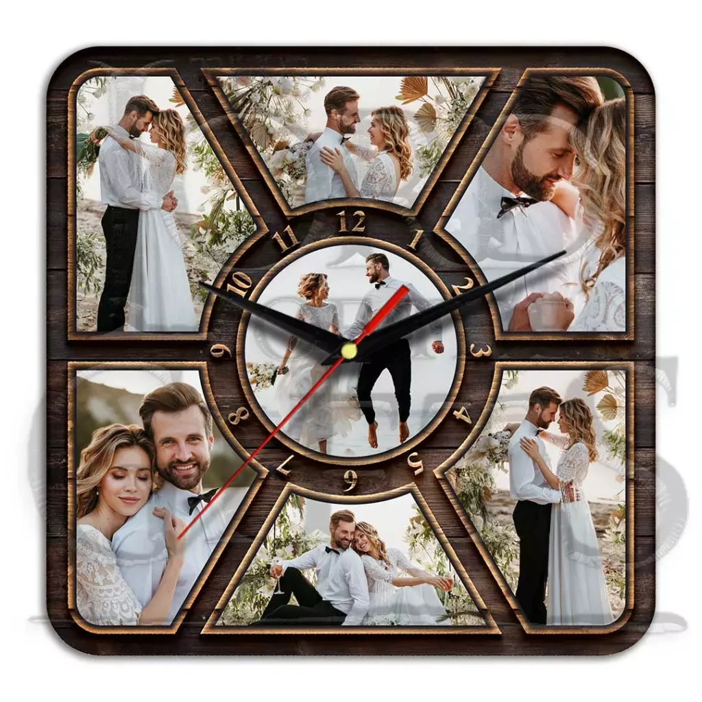 Ahşap Tasarımlı 5 Fotoğraf Baskılı Duvar Saati