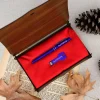 Ahşap Kutulu İsme Özel Mavi USB Bellek Kalem Seti