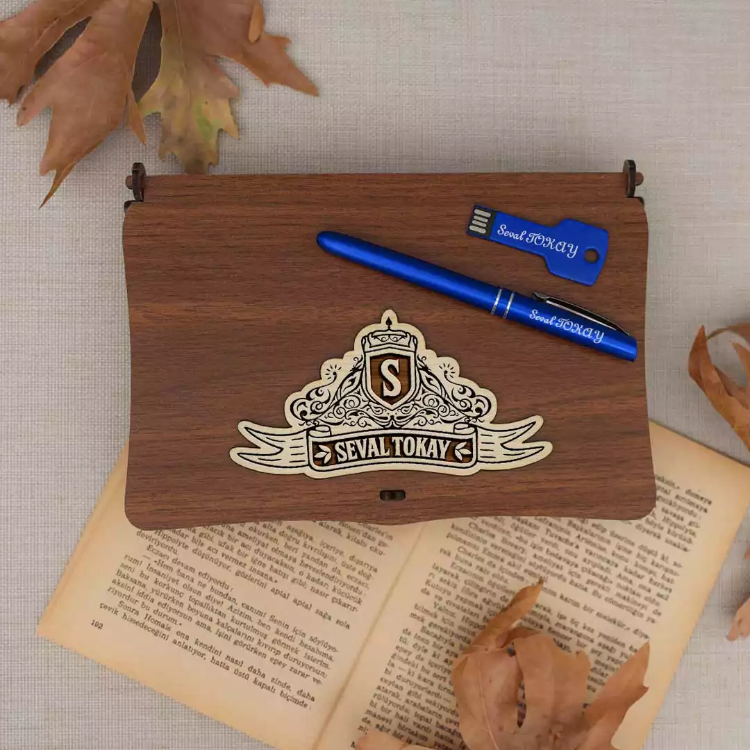 • Ahşap Kutulu İsme Özel Mavi USB Bellek Kalem Seti, özenle hediye paketi yapılarak gönderilmektedir.