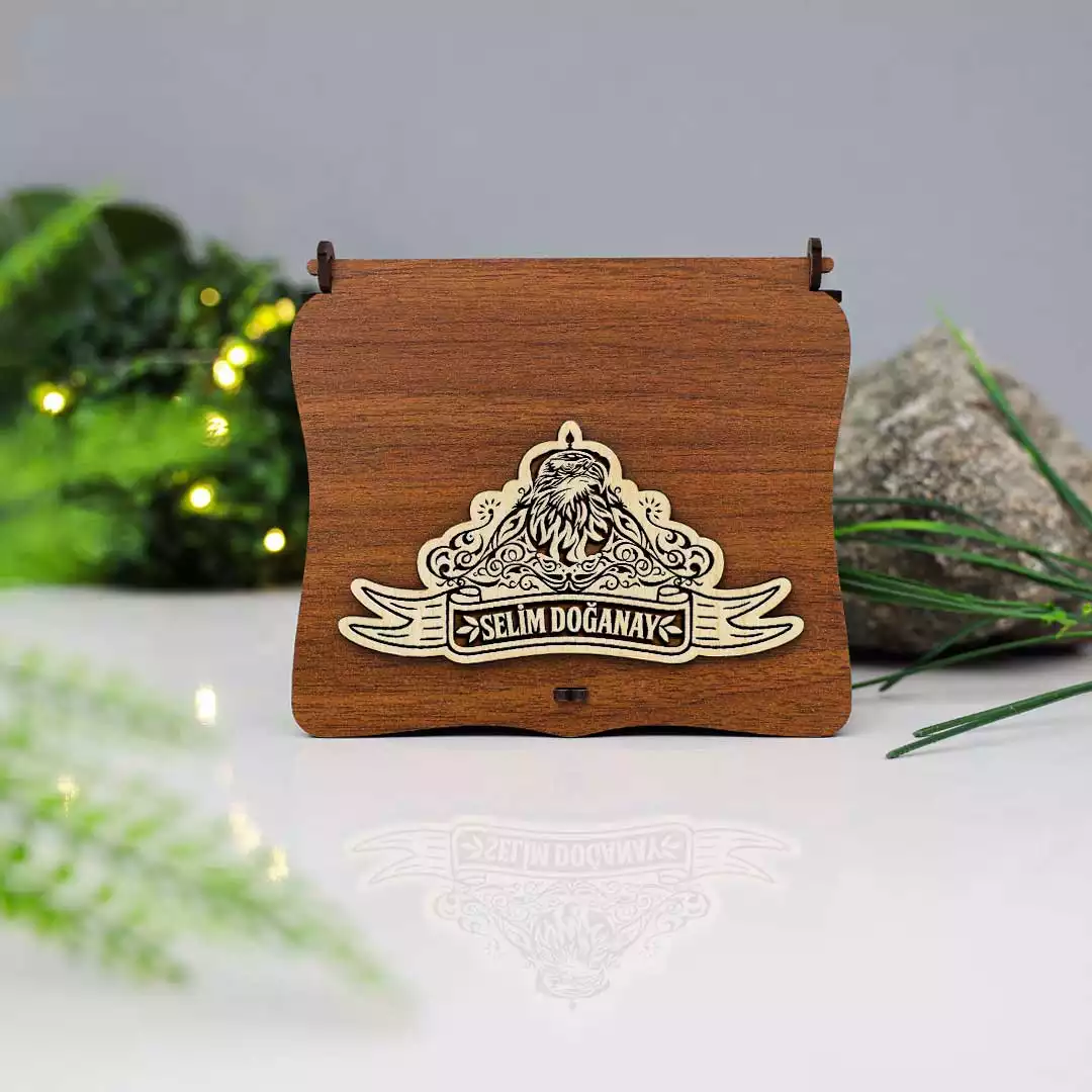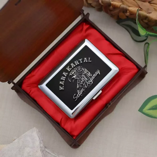 Ahşap Kutulu Kabartma Efektli Kara Kartal Desenli Kişiye Özel Sigara Tabakası
