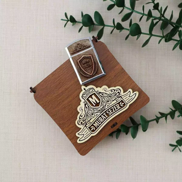 Ahşap Kutulu Kişiye Özel Grunge Efektli Baskılı Çakmak