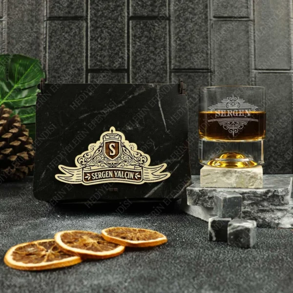 Ahşap Kutulu Retro Arma Tasarımlı İsme Özel Viski Kadehi