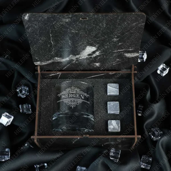 • Hediye seti 1 adet viski kadehi ve 3 adet viski soğutma taşı içermektedir.