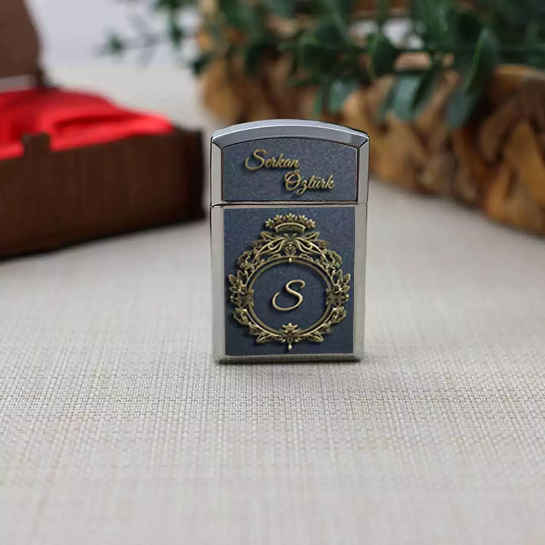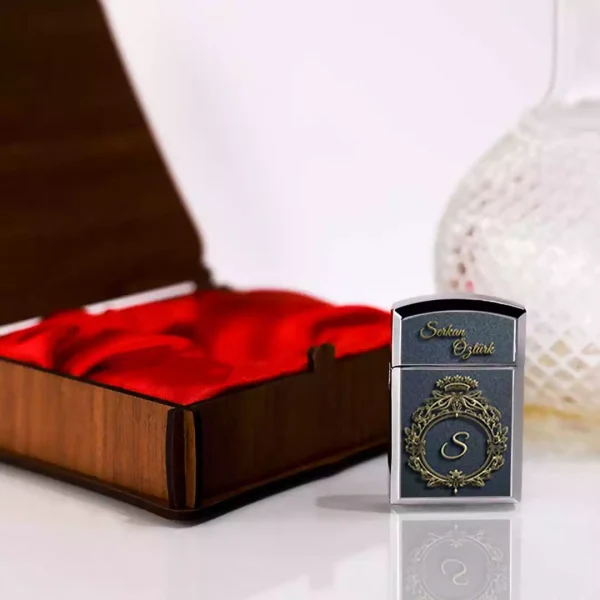 Ahşap Kutulu Vintage Tasarımlı Kabartma Efektli Kişiye Özel Baskılı Çakmak