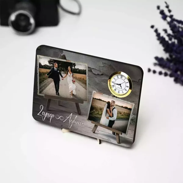 Kişiye Özel 2 Fotoğraf Baskılı Masaüstü Saat