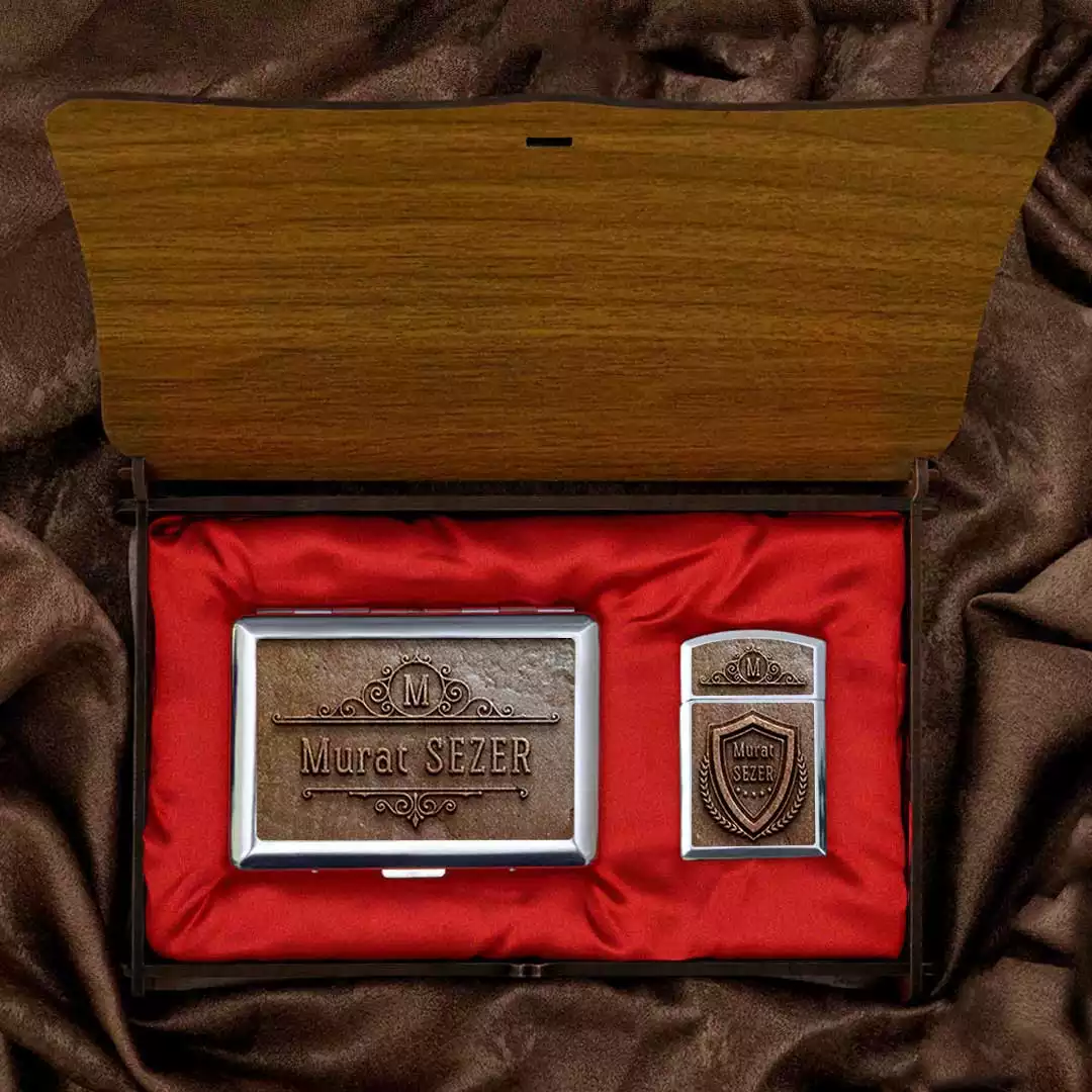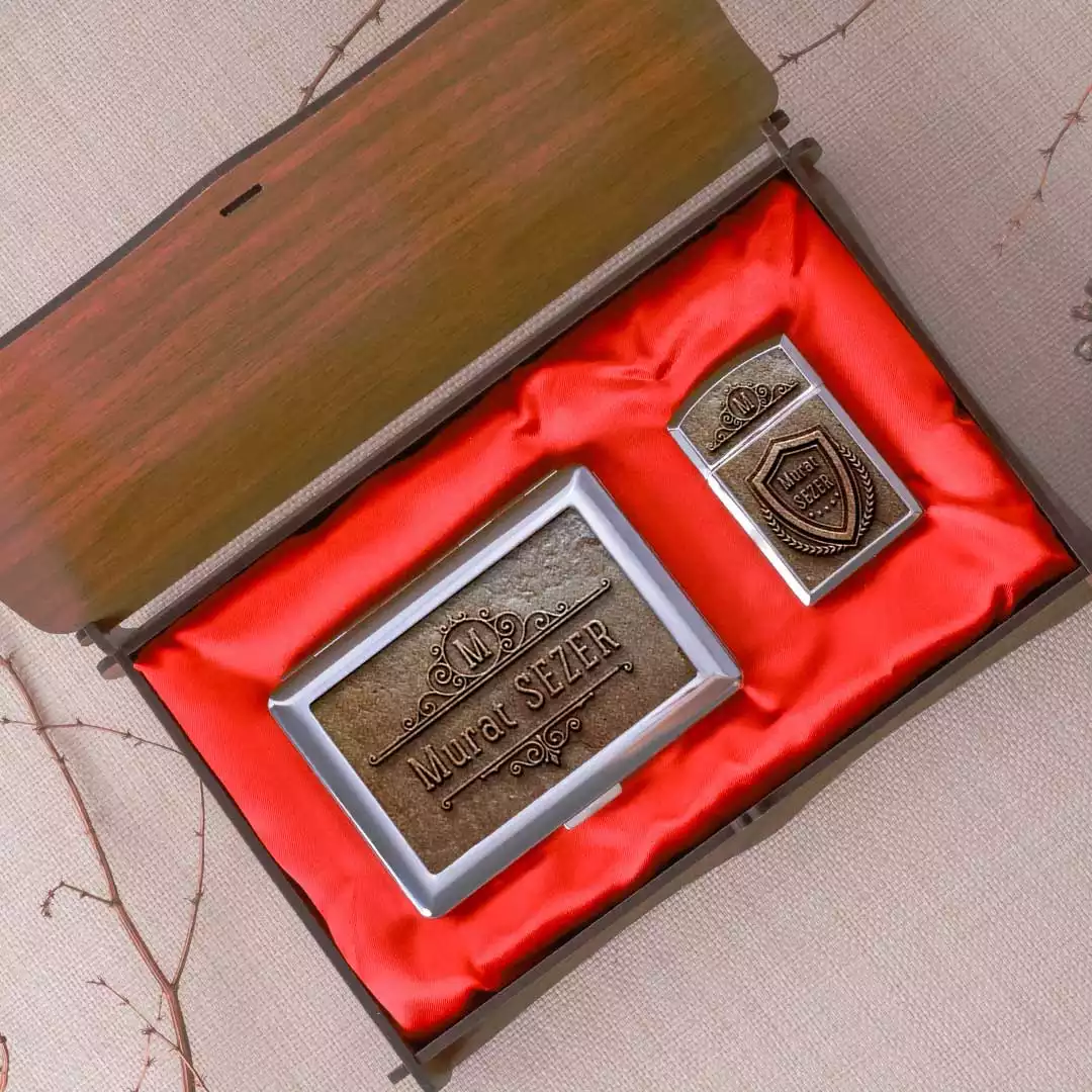 • Metal Baskılı Sigara Tabakası ve Çakmak Seti özenle hazırlanıp, hediye paketi yapılarak gönderilmektedir.